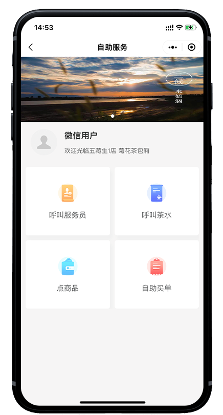 商家小程序提供电子会员卡、自助点单、自助结账等服务。每个房间均有对应二维码,客人扫码即可自助点单、呼叫服务、自助结账,提升门店效率。同时客人扫码即可注册会员、联动 公众号和小程序,精细化运营,提升用户留存率和转化率。