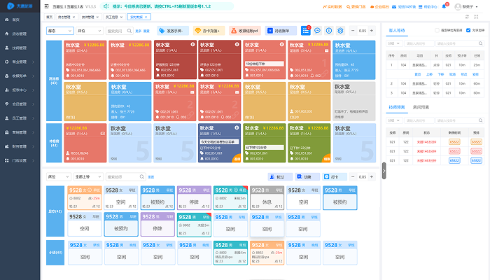 这套足浴管理系统自动计算折扣金额、等待时长、自动调派等